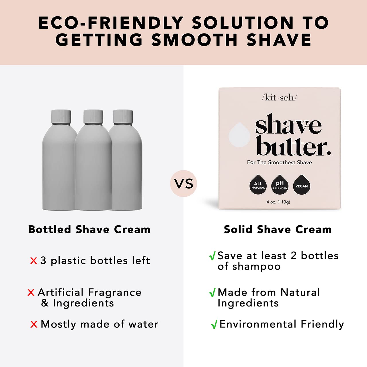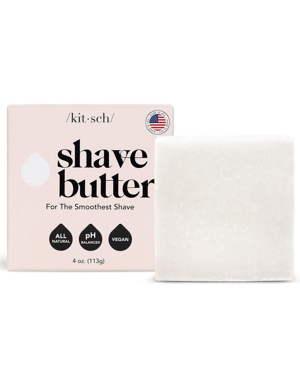 Kitsch Smooth Shave Butter – Smoothing Shave Butter for Sensitive Skin | Made in US | Hydrating Clear Non Clog Formula | For All Skin Types | Solid Shaving Butter | Sulfate Free & Paraben Free, 4 oz