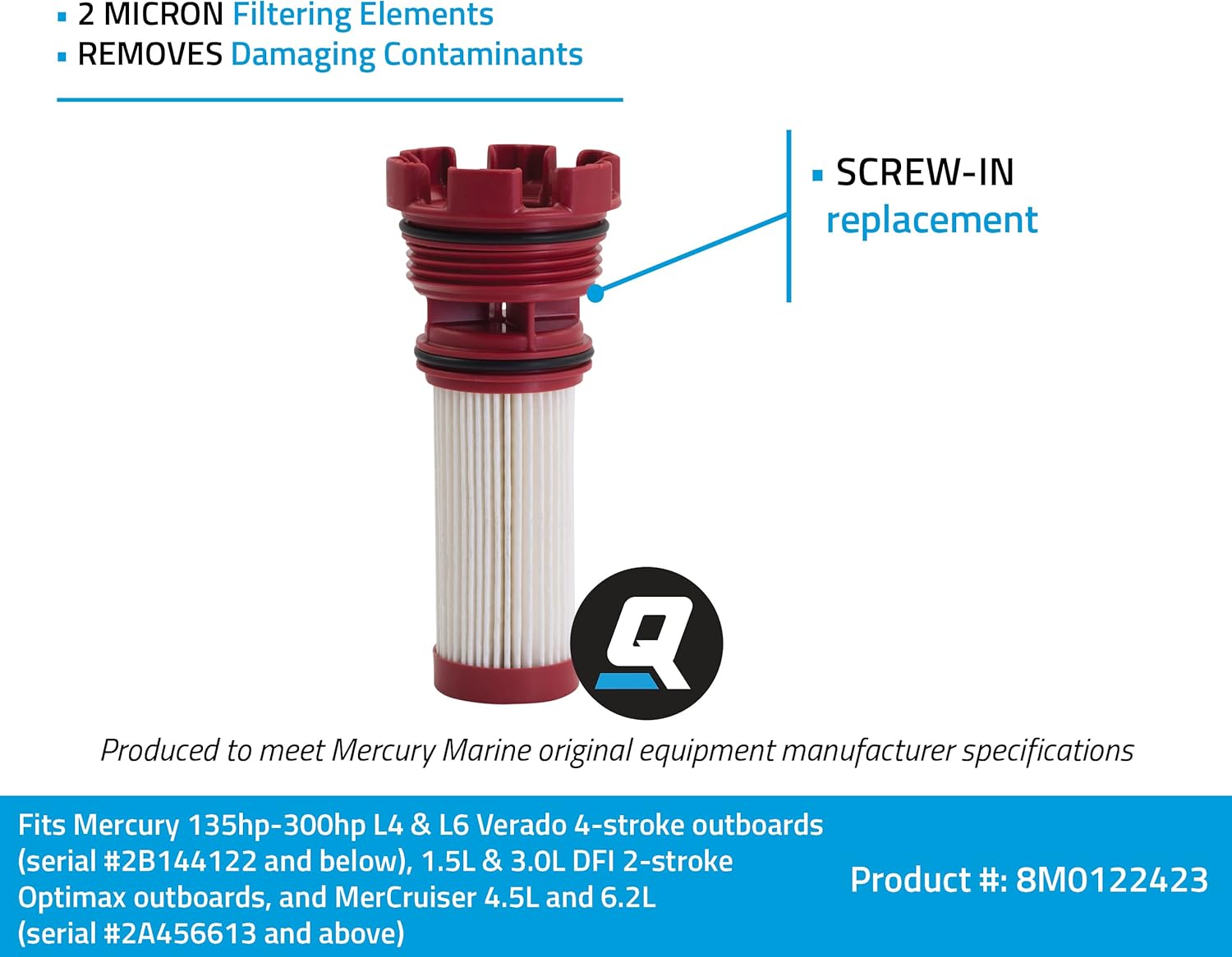 Quicksilver by Mercury Marine 8M0122423 Fuel Filter Element for Select Mercury and Mariner Outboards and MerCruiser Sterndrive Engines