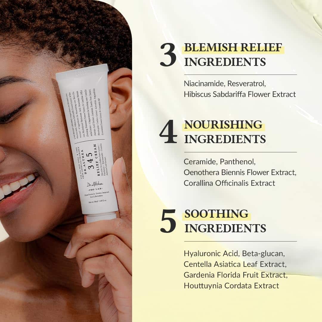 - DAILY RELIEF & SOOTHING CARE : 345 Relief Cream offers a moisturizing texture with a silky finish without any greasy feeling. Its refreshing formula is ideal for any time as part of your post-acne skincare routine.