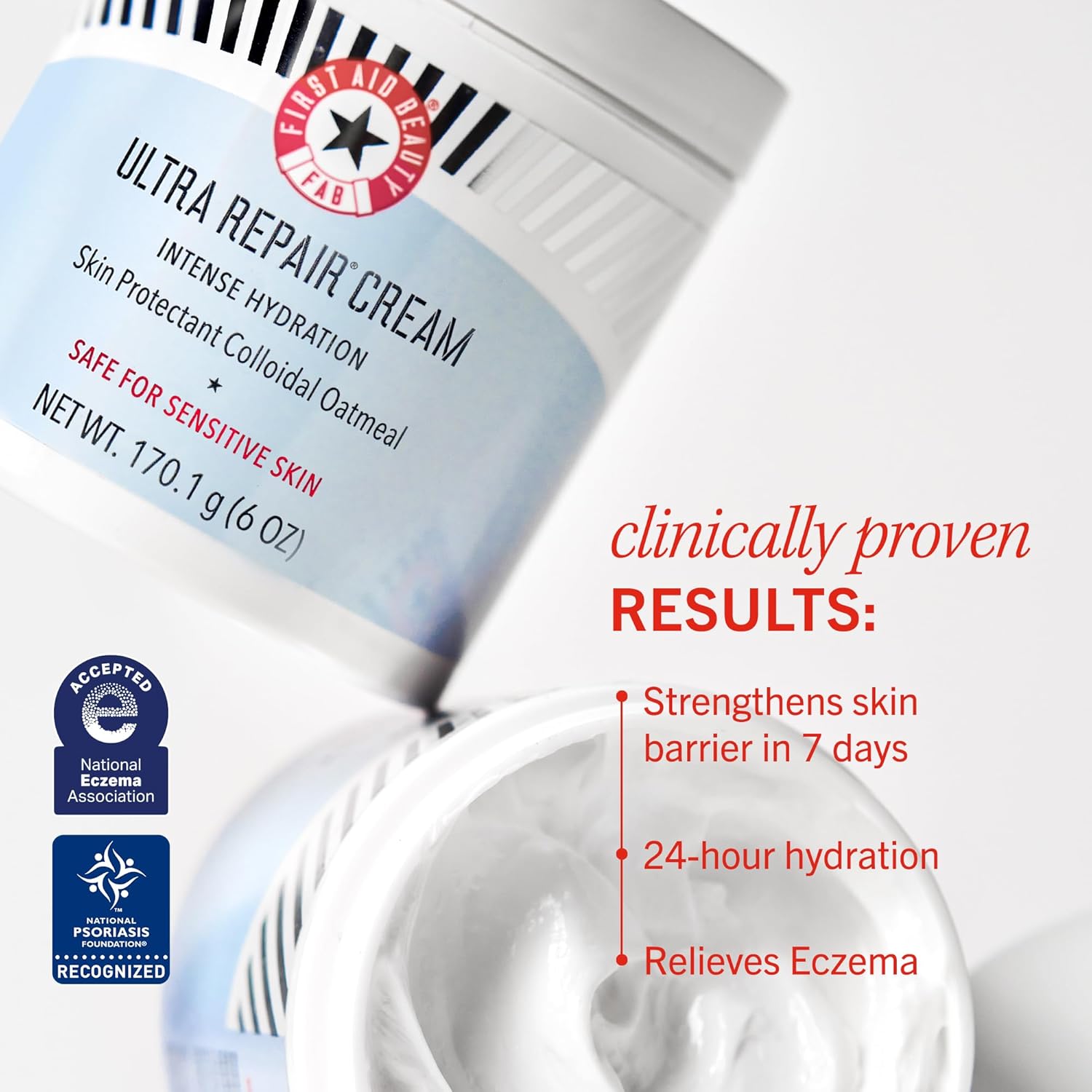 First Aid Beauty – Ultra Repair Cream, Intense Hydration Whipped Colloidal Oatmeal, Clinically Proven to Strengthen Skin Barrier in 7 Days & Helps Relieve Eczema, Luxury Face & Body Moisturizer, 6 oz