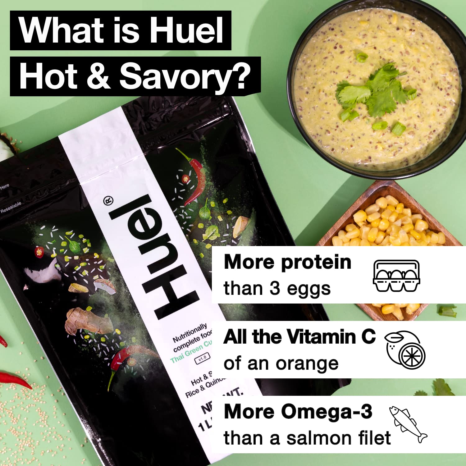Huel Hot and Savory Instant Meal Replacement – Thai Green Curry – 14 Scoops Packed with 100% Nutritionally Complete Food, Including 20g of Protein, 10g of Fiber, and 27 Vitamins and Minerals