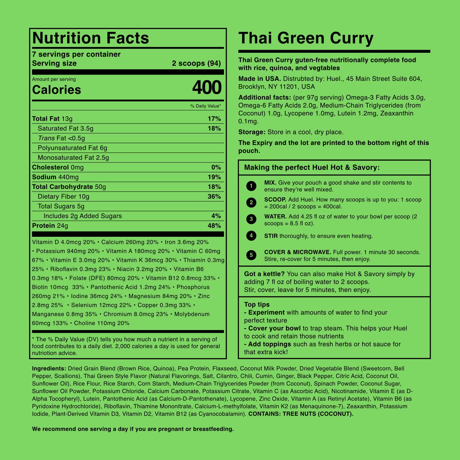 • CONTENTS: Contains 1 bag of Huel Hot & Savory Thai Green Curry and a LastFuel Scoop!