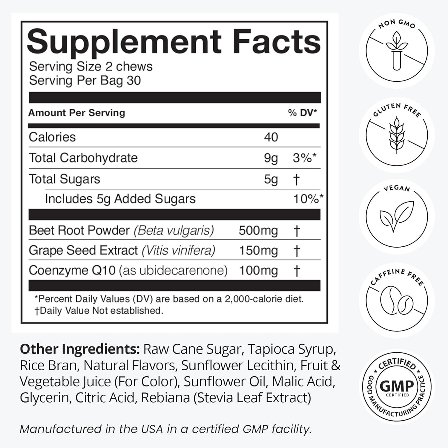 humanN SuperBeets Heart Chews Advanced – 100mg of CoQ10 Plus Beetroot & Grape Seed Extract, 60 Count