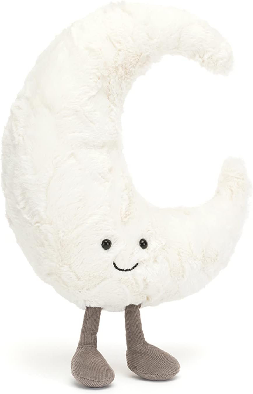 • Amuseables Moon: Amuseables Moon promises sweet dreams with a soothing smile and soft, pearl-white fur textured with velvety craters. A weighted bottom makes it easy to prop up this peaceful moon stuffed toy on a nightstand when slumber comes.