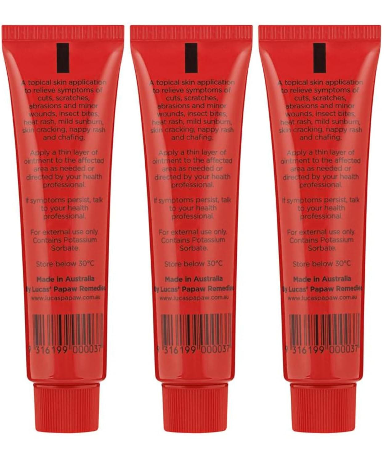 Lucas’ Papaw Ointment – 3 Tubes of 15g Each with Lip Applicator – Multipurpose Skin Relief – Made in Australia
