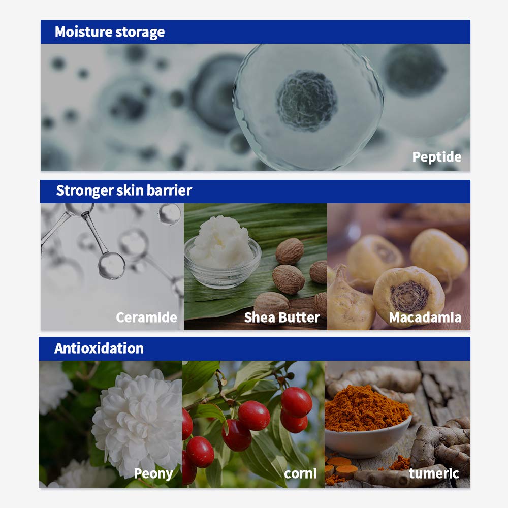 • 🌿 3-LAYER SKIN BARRIER – Ceramide in the cream plays the role of mortar which prevents moisture evaporation, adjusting oil and moisture balance properly while reinforcing an imbalanced skin barrier. Moreover, Shea Butter and Macadamia seed oil nurishes dry skin and reduce sebum resulting from aging skin.
