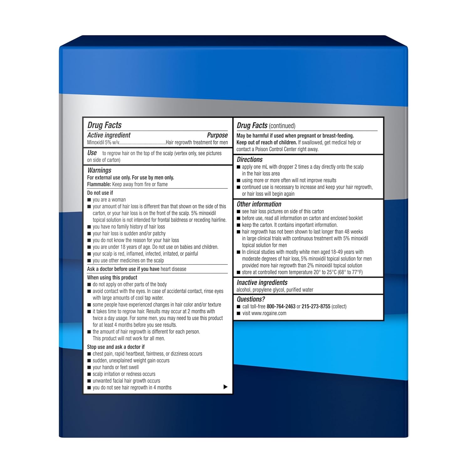 REGROW THINNING HAIR: 3-month supply (three, 2-fluid ounce bottles) of Men’s Rogaine Extra Strength Unscented 5% Minoxidil Topical Solution to help treat hair loss, maintain hair density & allow for the regrowth of fuller hair