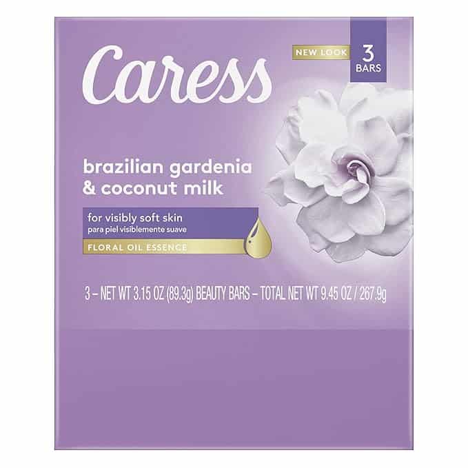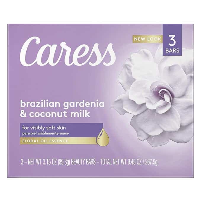 Caress Beauty Bar Soap For Visibly Soft Skin Brazilian Gardenia & Coconut Milk With Floral Oil Essence 3.15 oz 3 Bars